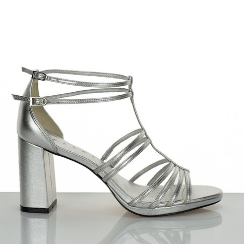 Francesca, sandália feminina com tiras finas, salto grosso, plataforma baixa.