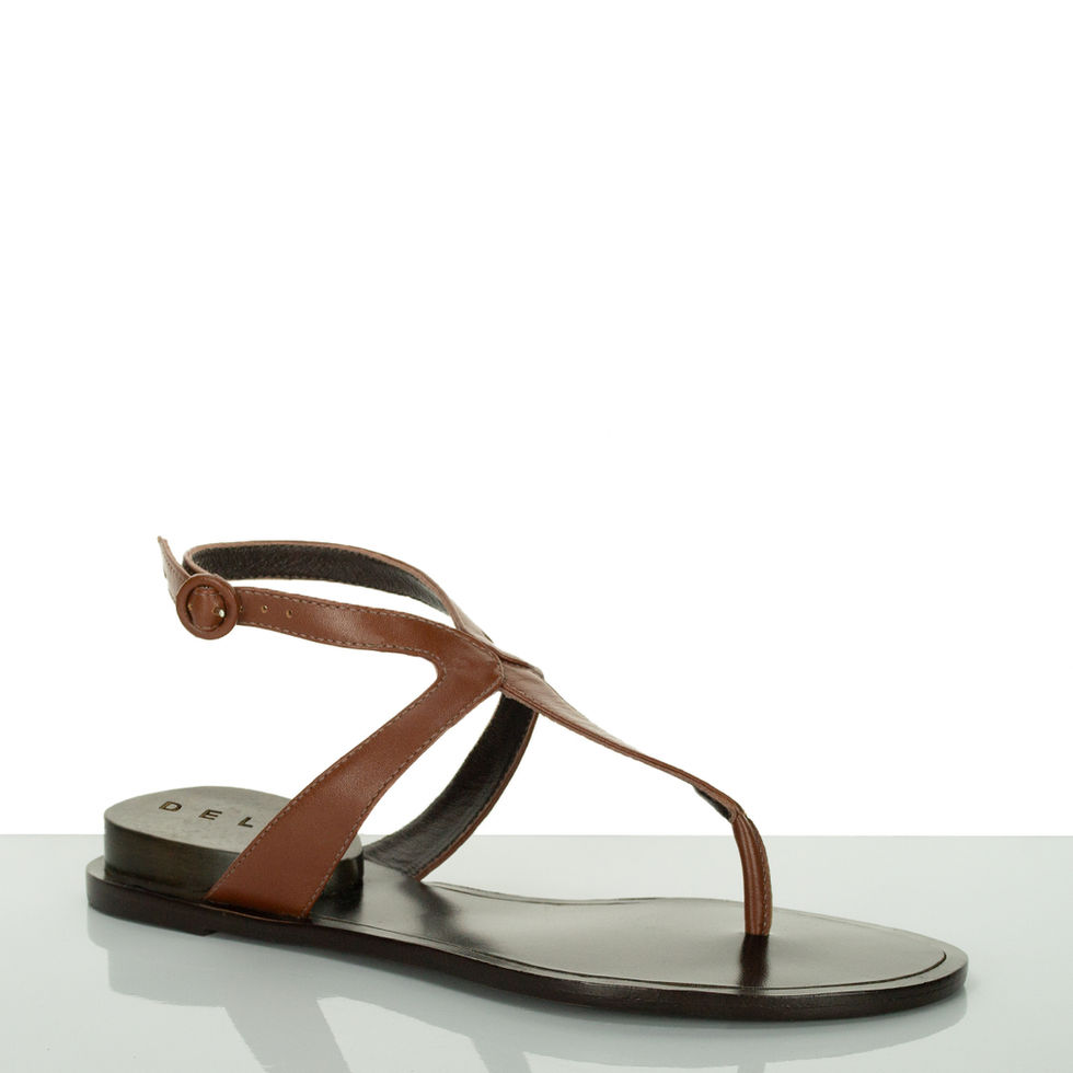 Marina, rasteira de pelica tabaco com salto interno de madeira.