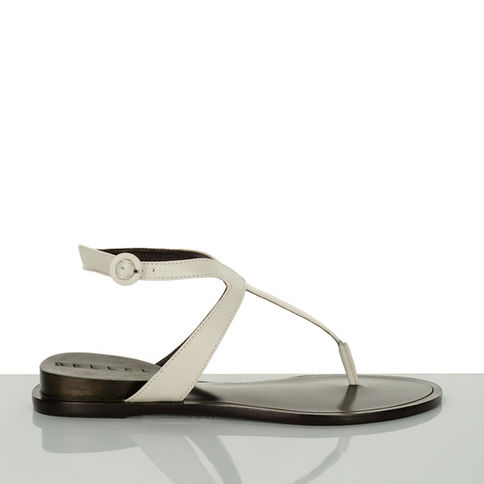 Marina, rasteira de pelica off-white com salto interno de madeira